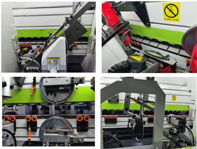 切斷板材兩頭的多余封邊帶(氣缸帶2個(gè)調(diào)壓閥1個(gè)泄壓閥)氣壓更穩(wěn)定,齊頭齊尾更穩(wěn)定. |