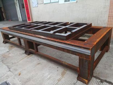 采用方鋼焊接,回火處理,消除焊接應(yīng)力,保證使用多年后不會(huì)變形。床身加強(qiáng)筋比較密集,增加了床身強(qiáng)度,保證底板不變形。 |