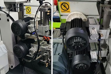 切斷板材兩頭的多余封邊帶(氣缸帶2個(gè)調(diào)壓閥1個(gè)泄壓閥)氣壓更穩(wěn)定,齊頭齊尾更穩(wěn)定. |