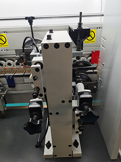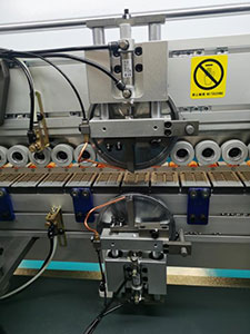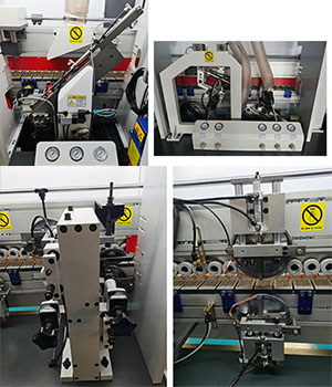 6輪壓貼貼合比4輪更精密,膠線輕微不跑帶,貼合牢靠,厚薄木皮均可輕松走帶,氣缸控制開關(guān)膠門,膠量穩(wěn)定,厚薄均勻。 |