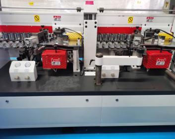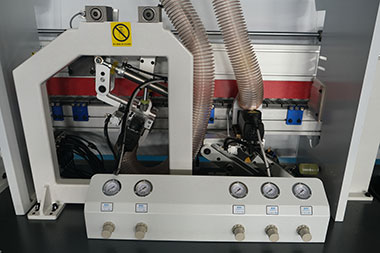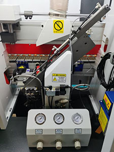 切斷板材兩頭的多余封邊帶(氣缸帶2個(gè)調(diào)壓閥1個(gè)泄壓閥)氣壓更穩(wěn)定,齊頭齊尾更穩(wěn)定. |