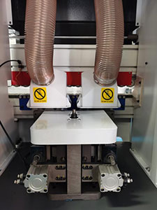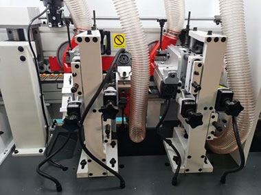 金剛石預(yù)銑刀銑去木板螺旋修邊刀的波紋痕跡和多余的毛刺,使板邊更貼合封邊條,粘接更牢固,更美觀。氣動(dòng)控制的預(yù)銑座,更精確,操控更方便。 |