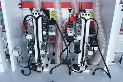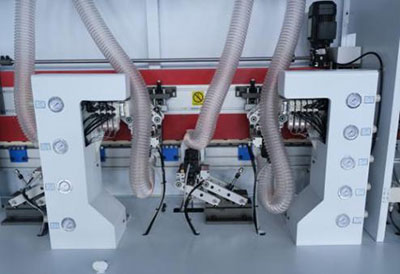 金剛石預(yù)銑刀銑去木板螺旋修邊刀的波紋痕跡和多余的毛刺,使板邊更貼合封邊條,粘接更牢固,更美觀。氣動(dòng)控制的預(yù)銑座,更精確,操控更方便。 |